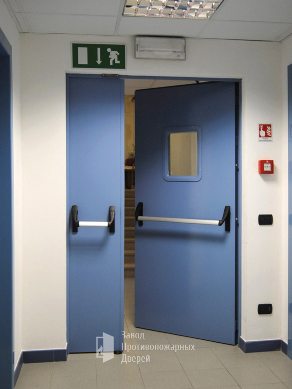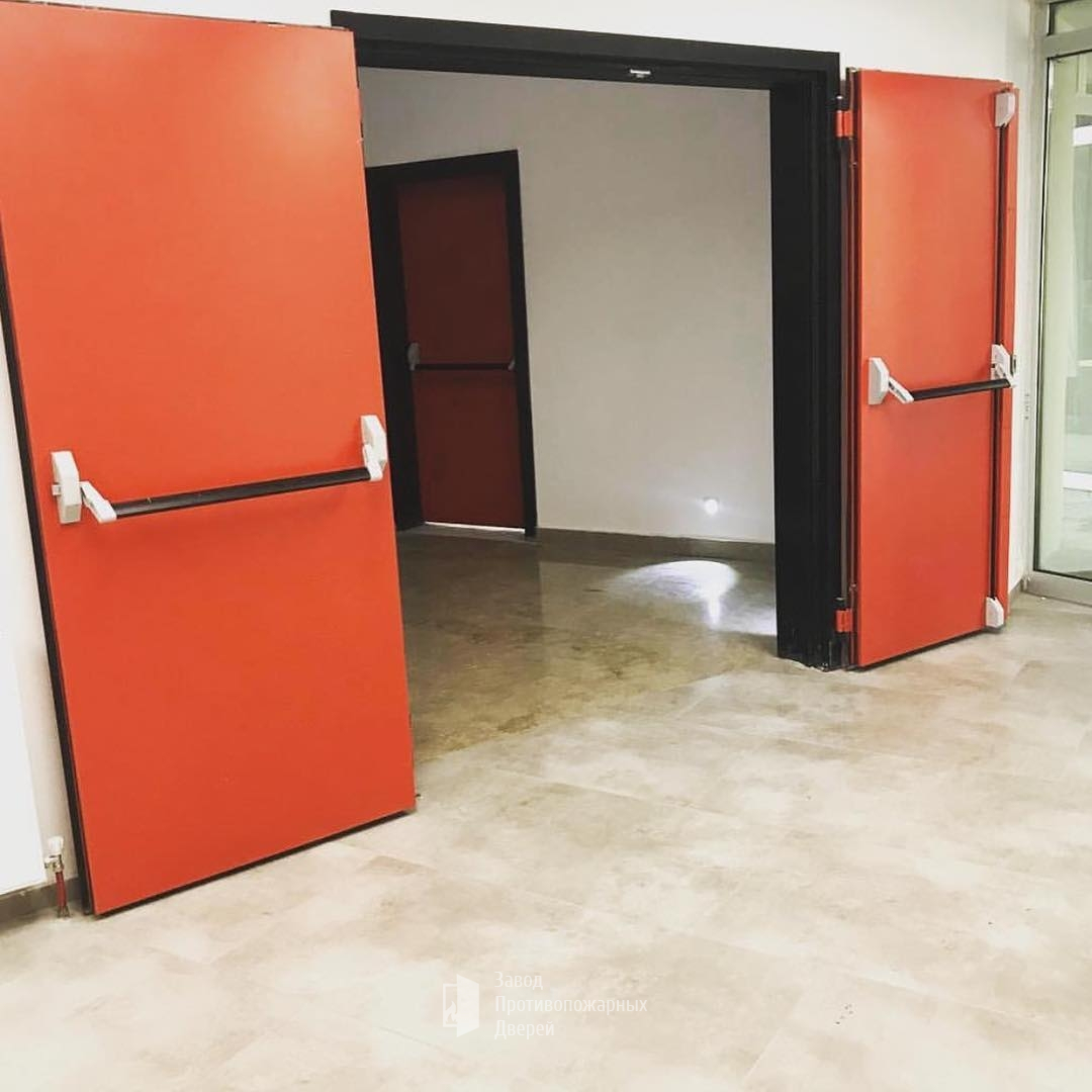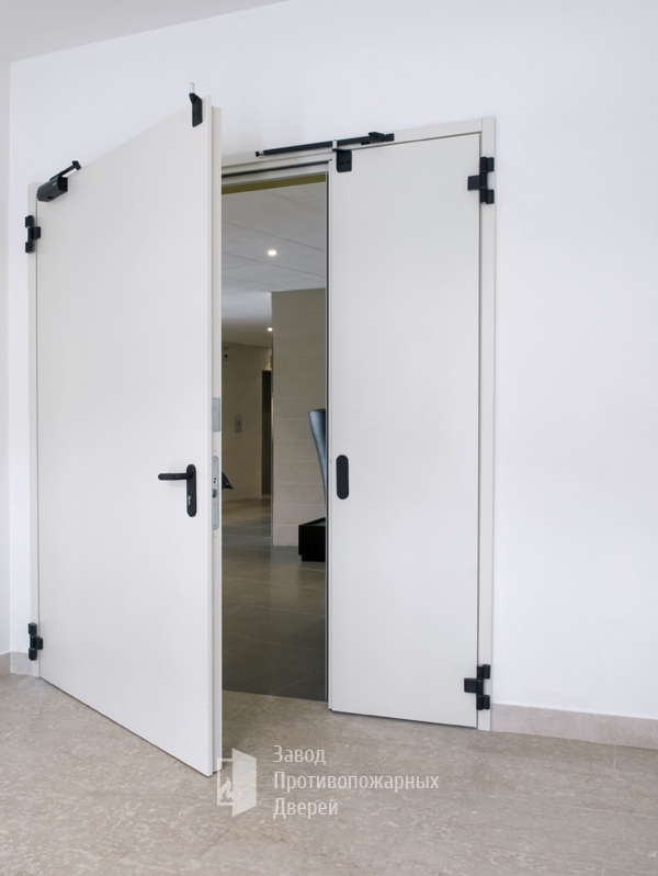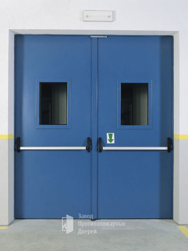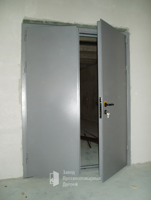 Двухстворчатые двери устанавливают в основном на производстве, в складских помещениях, специализированных цехах и технических комнатах. Такие изделия выполняются с учетом всех особенностей помещения и требований пожарной безопасности.